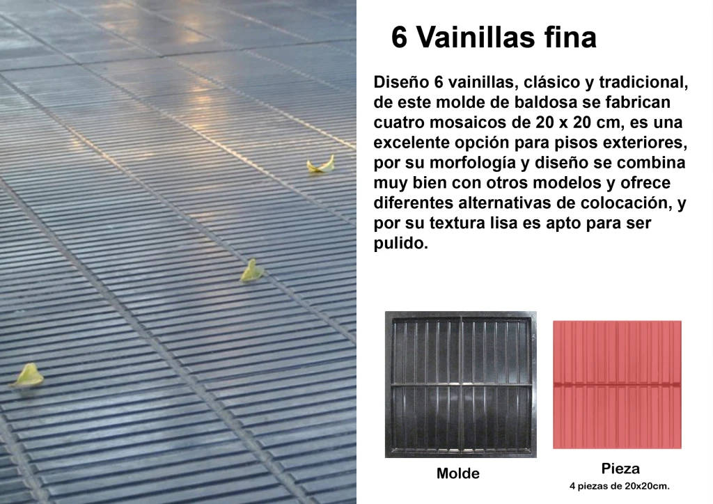 Molde Baldosas Cemento Mosaico 6 Vainillas Fina